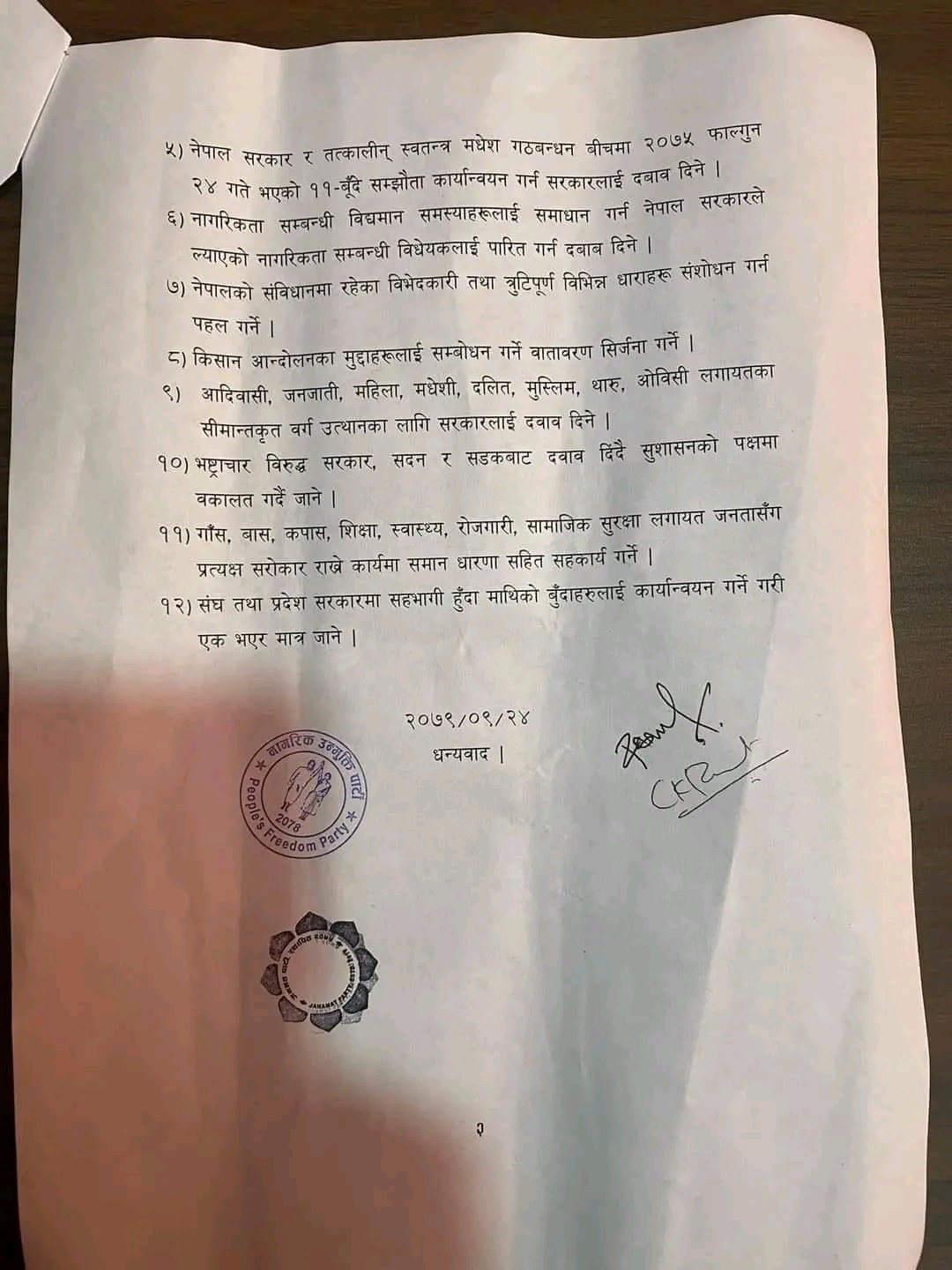 साथै सर्वोेच्च अदालतले समेत सार्वजनिक गर्न आदेश दिएको उच्चस्तरीय लाल आयोगको प्रतिवेदन सार्वजनिक गर्न पहल गर्ने र नागरिकताको समस्या समाधान गर्न दबाब दिने सहमति पनि भएको छ । कैलालीकाे टीकापुर घटनाको सत्य/तथ्य पत्ता लगाउन सरकारले गठन गरेको लाल आयोगको प्रतिवेदन सार्वजनिक गर्न सर्वोच्च अदालतले समेत आदेश दिएको थियो । प्रतिनिधि सभामा जनमत पार्टीले छ सिट र नागरिक उन्मुक्ति पार्टीले चार सिट जितेका छन् ।