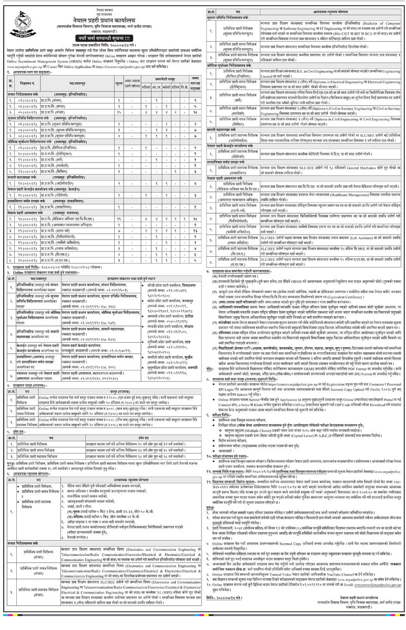 प्रहरी प्रधान कार्यालयको मानवश्रोत विकास विभाग, वृत्ति विकास महाशाखा, भर्ना छनोट शाखाले प्राविधिक प्रहरी समूहअन्तर्गत रिक्त रहेका विभिन्न पदमा खुला तथा समावेशी प्रावधान बमोजिम पदपूर्ति गर्न लागेको हो ।