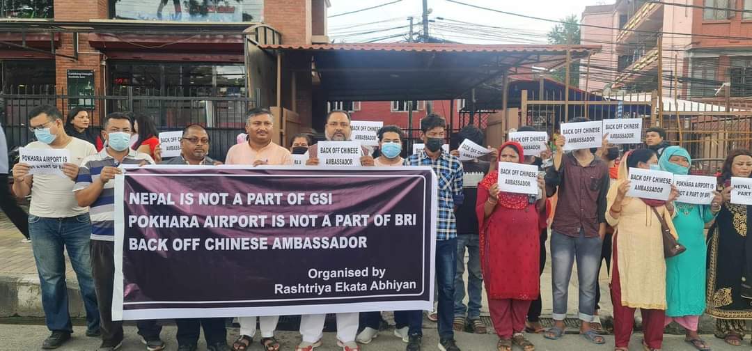 चिनियाँ राजदूतलाई देश निकलाको मांग गर्दै काठमांड़ौमा प्रदर्शन
