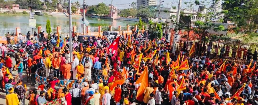 जनकपुर : हनुमान जयन्तीको अवसरमा शाैभायात्रा ,हिन्दु राज्य कायमको नारा गुन्जियाे