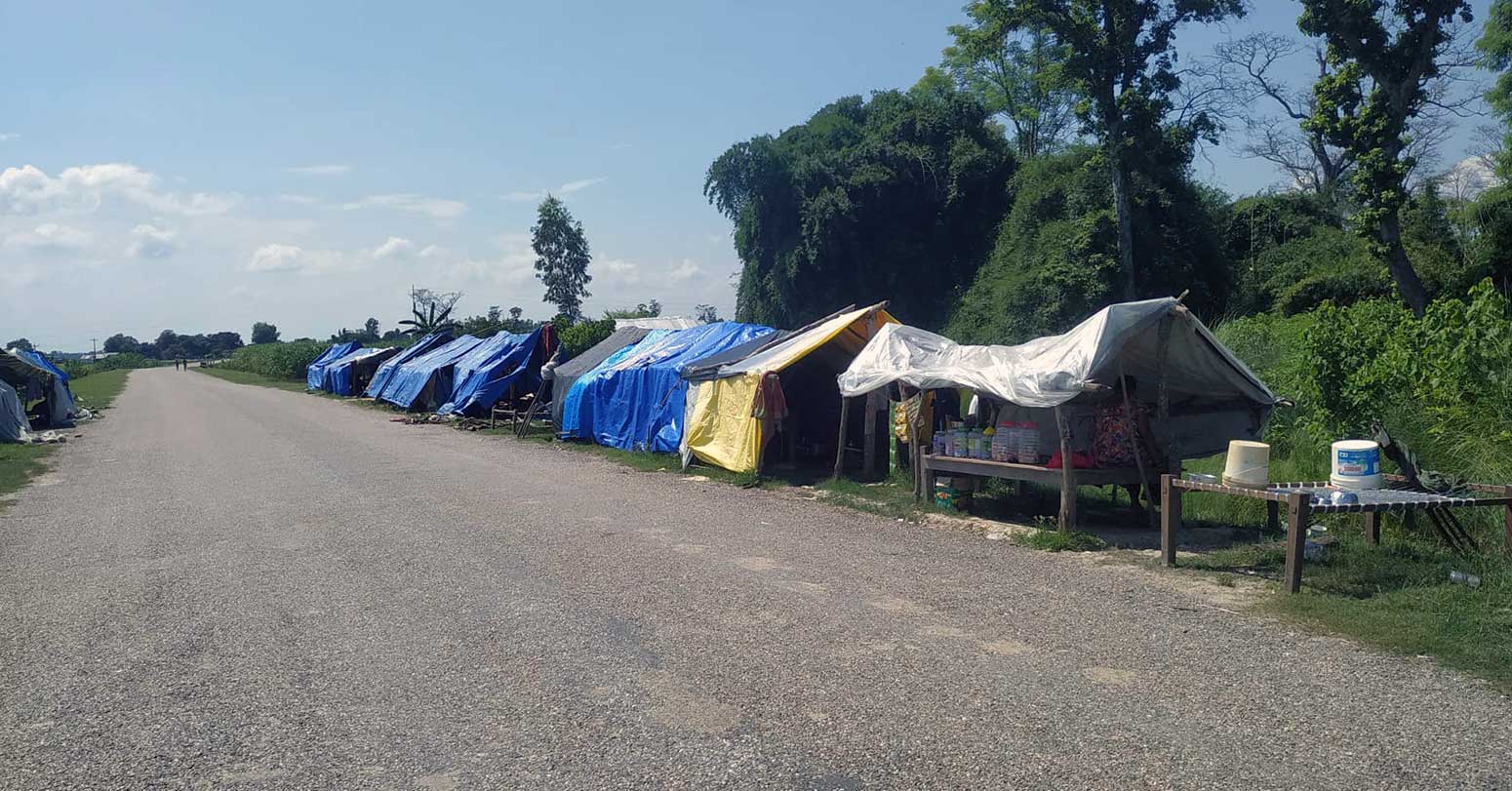 बाढी र डुबानको त्रास: घर छोडेर सडकमै त्रिपाल लगाएर टहरा