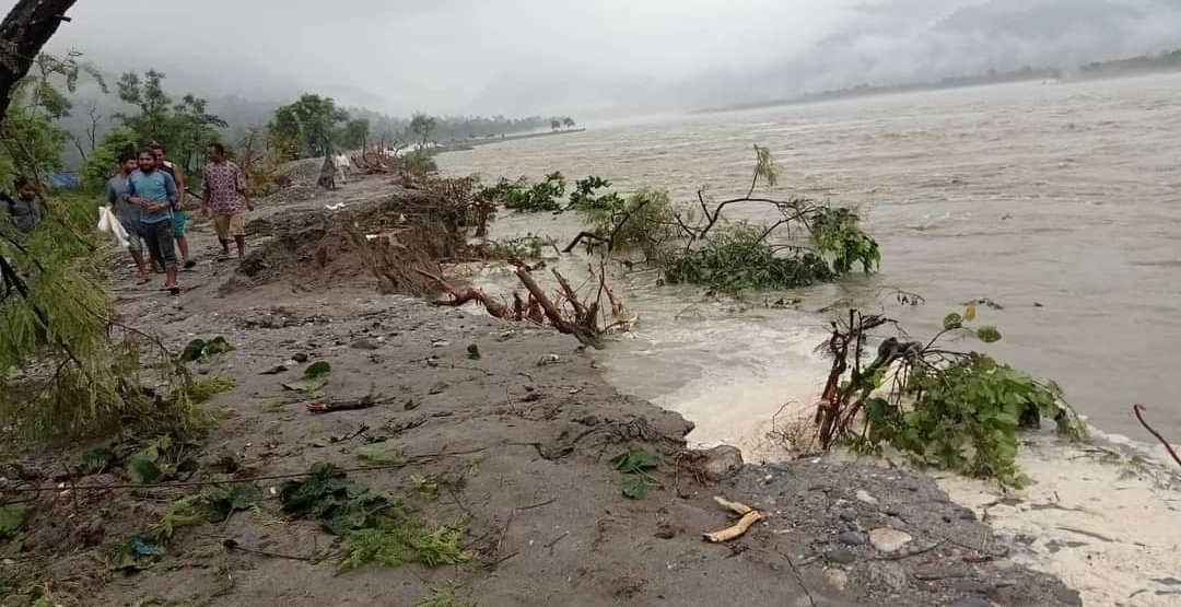 सप्तकोसीको बाढी बस्तीतर्फ लगेपछि, बस्तीमा खतरा